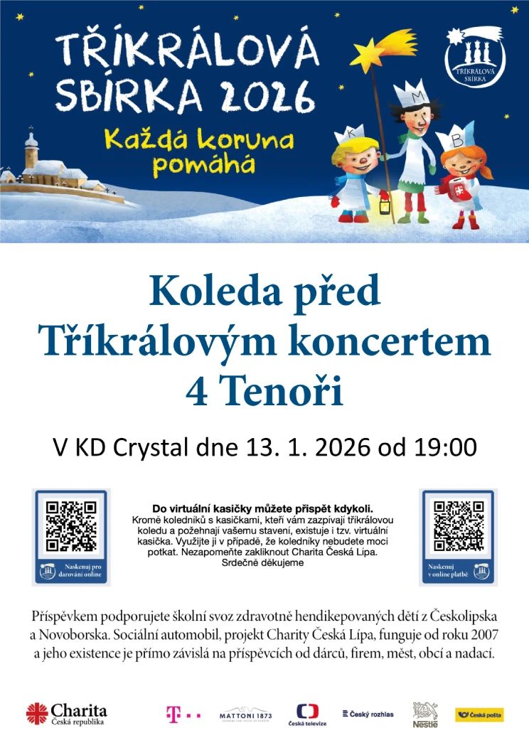 Před začátkem koncertu proběhne tříkrálová sbírka Charita Česká Lípa na školní svoz zdravotně hendikepovaných dětí.