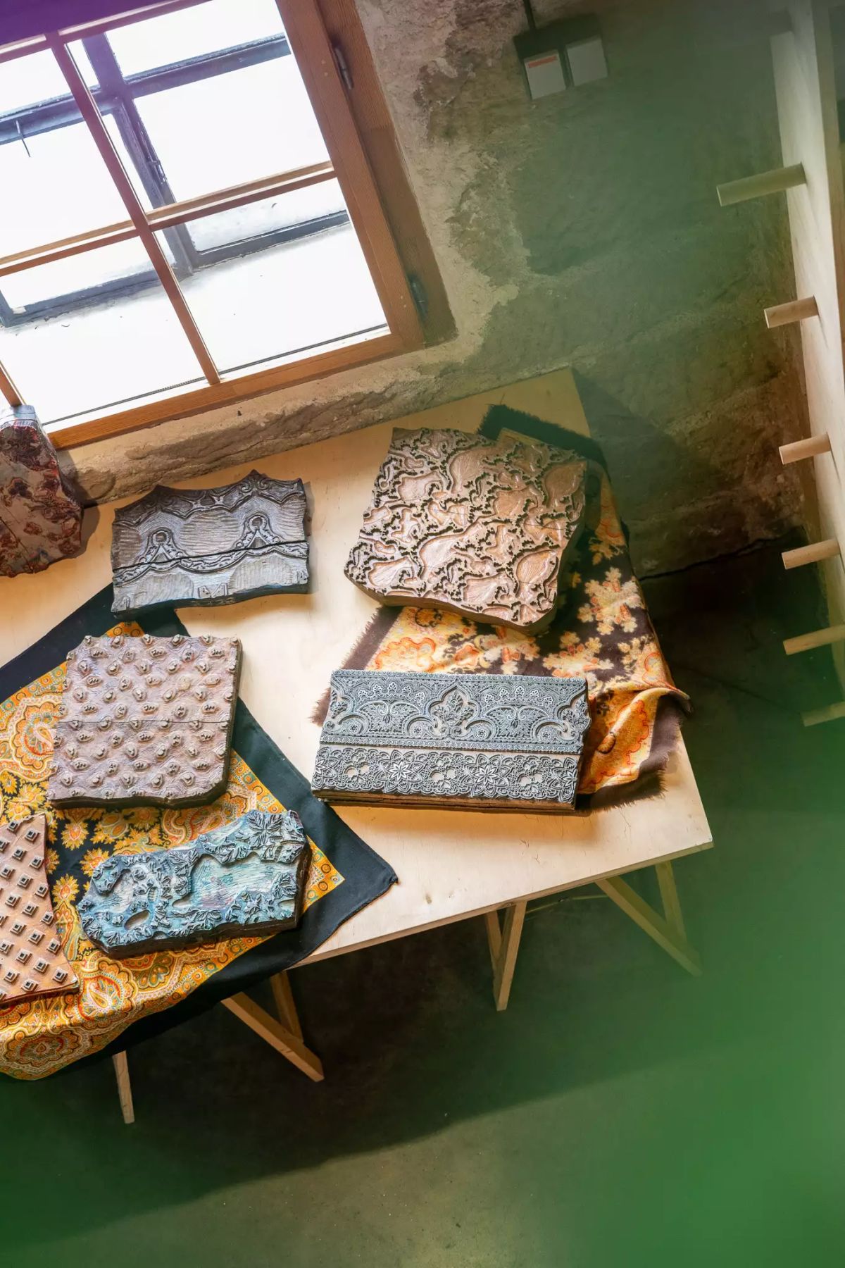 Výstava autorských textilií z ručně potištěných barvených látek výtvarnice Markéty Kotkové