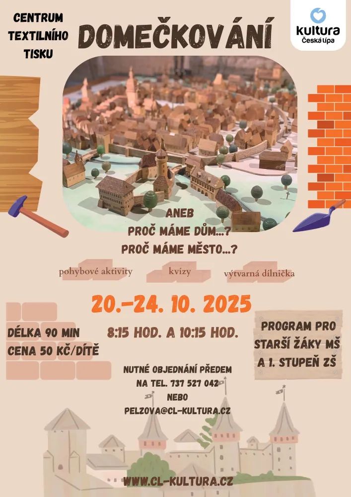 Poutavým výkladem a vizualizacemi se děti seznámí se vznikem hradu i samotného města, čeká je také pohybová část a na závěr výroba domečků z dřevěných korpusů, z nichž společně vznikne celé město.