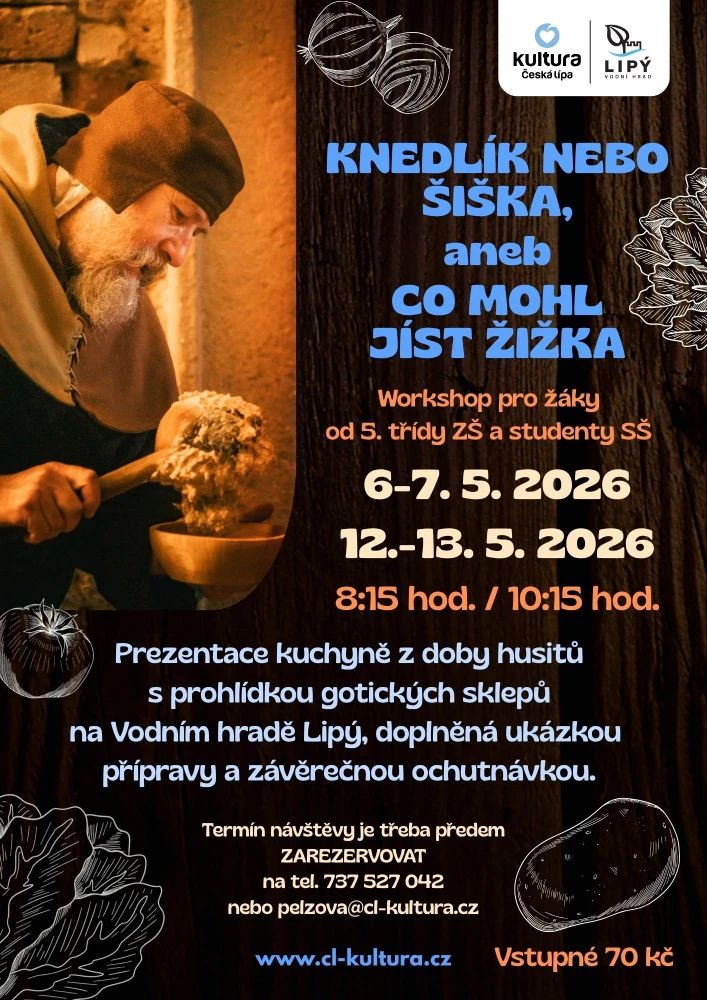 Zábavnou formou se žáci a studenti seznámí s historií jídla, stolování a servírování v době husitů. Čeká je prezentace dobové kuchyně spojená s prohlídkou gotických sklepů.